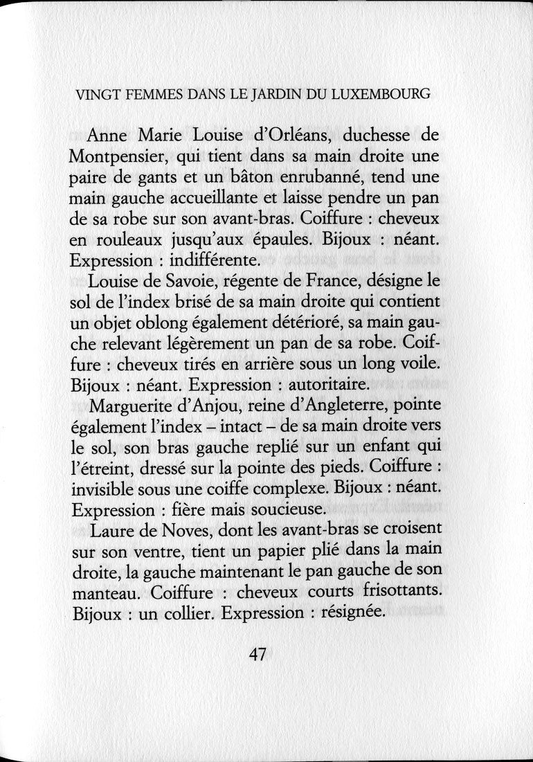 Heureux hasard, la lecture d’un livre de nouvelles d’un des importants écrivains contemporains m’a fait découvrir une fois de plus que je n’étais pas le seul à être intéressé par le sujet me renvoyant vers une artiste plasticienne qui s’était penchée aussi sur le parc où elles se trouvent ces dames.