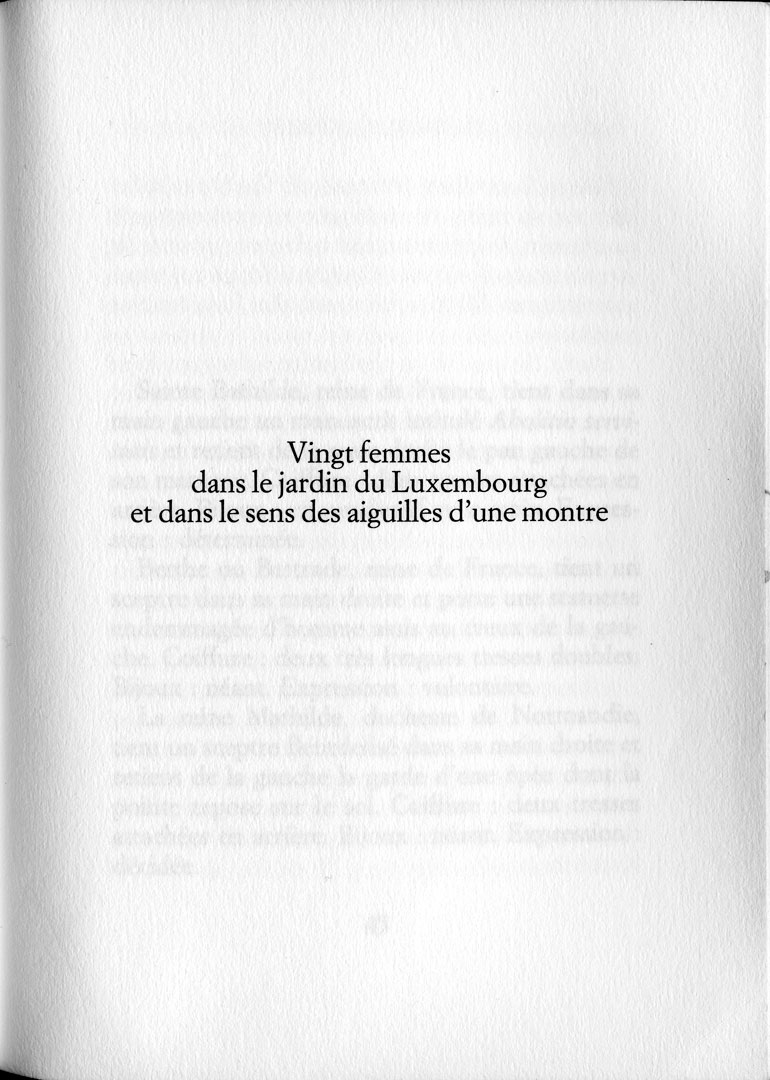 It was in Editing that I realized the banal while looking for information to sort and isolate the 20 ladies.
